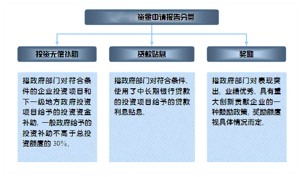 投資無(wú)償補(bǔ)助是指政府部門對(duì)符合條件的企業(yè)投資項(xiàng)目和下一級(jí)地方政府投資項(xiàng)目給予的投資資金補(bǔ)助,一般政府給與的投資補(bǔ)助不高于總投資額度的30%;獎(jiǎng)勵(lì),是政府部門對(duì)表現(xiàn)突出,業(yè)績(jī)優(yōu)秀,具有重大創(chuàng)新貢獻(xiàn)企業(yè)的一種鼓勵(lì)政策,獎(jiǎng)勵(lì)額度視具體情況而定;貸款貼息,是指政府部門對(duì)符合條件、使用了中長(zhǎng)期銀行貸款的投資項(xiàng)目給予的貸款利息貼息。